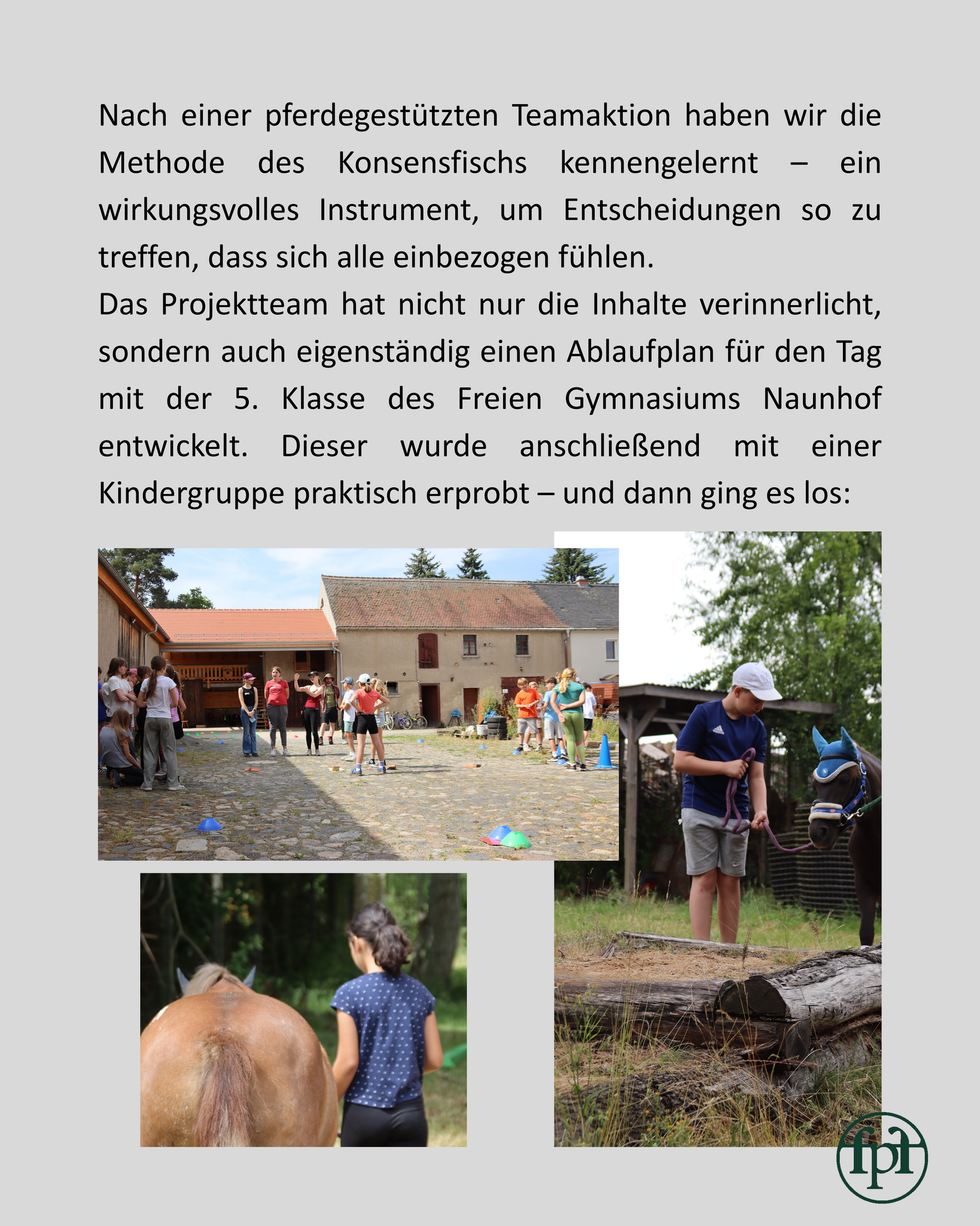 Mit unserem pädagogischen Konzept, unseren Zielen und unserem Team konnten wir die Jury des Gründerwettbewerbs für Ponyreitschulen der Deutschen Reiterlichen Vereinigung (FN) überzeugen. Neben der finanziellen Unterstützung und diversen Sachleistungen freuen wir uns vor allem über die umfassende und individuelle Beratung über die gesamte Projektlaufzeit von einem Jahr.