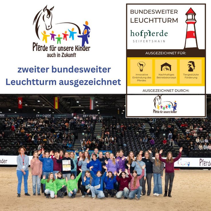 Die Grundidee des Projektes „Bundesweite Leuchttürme“ ist, dass Pferdebetriebe, die ein spezielles Angebot, großes Engagement und ein besonderes Wissen rund um das Thema Kinder und Pferde vorweisen, als „Musterbetriebe“ für Interessierte und andere Betriebe fungieren. Insbesondere das Heranführen von kleinen Kindern an Ponys und die Beziehungspflege zu Kindergärten und Schul-AGs sollen vorbildlich aufgezeigt werden. In jedem Bundesland soll ein Kompetenzzentrum entstehen, welches als Multiplikator für einen pädagogisch wertvollen Umgang von Erziehern, Kindern und Pferden dient und wichtige Werte vermittelt.